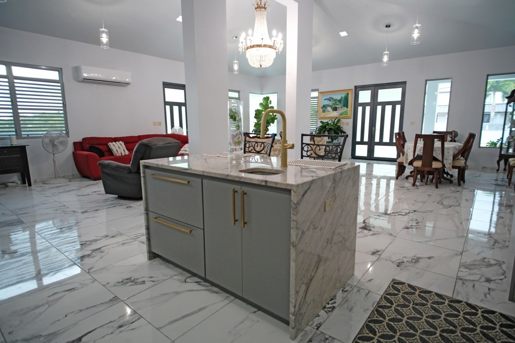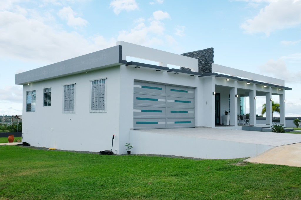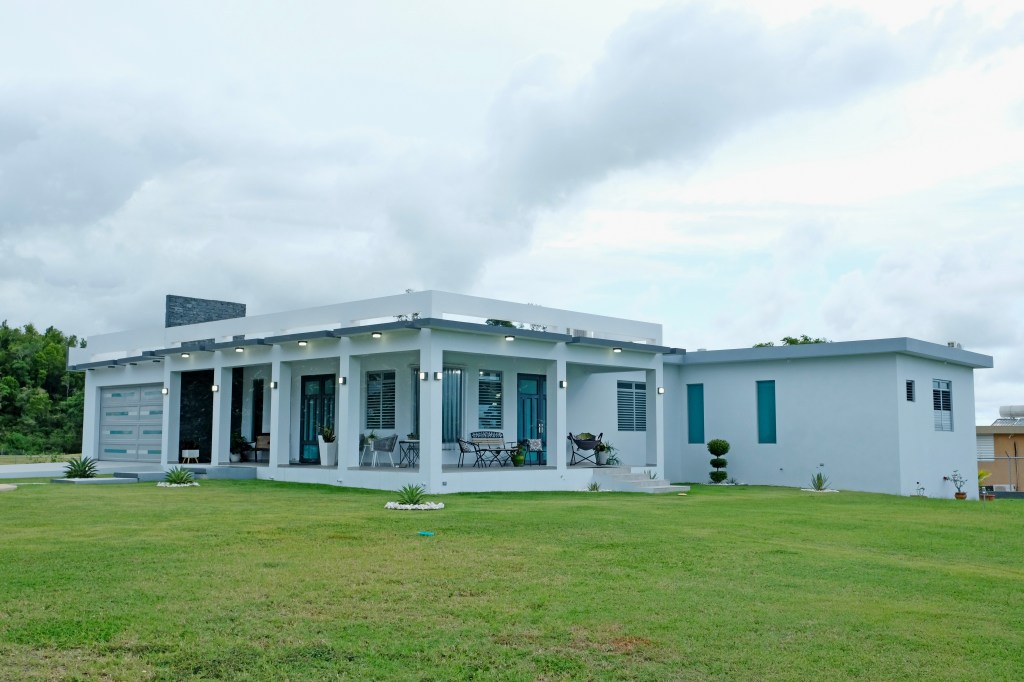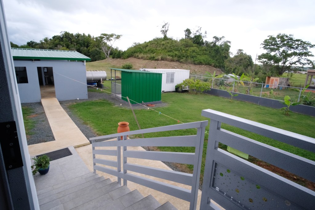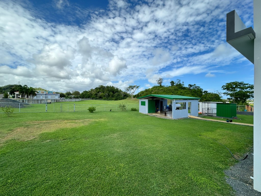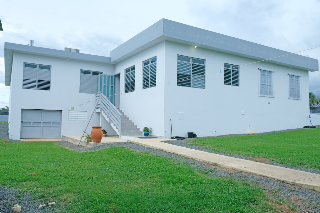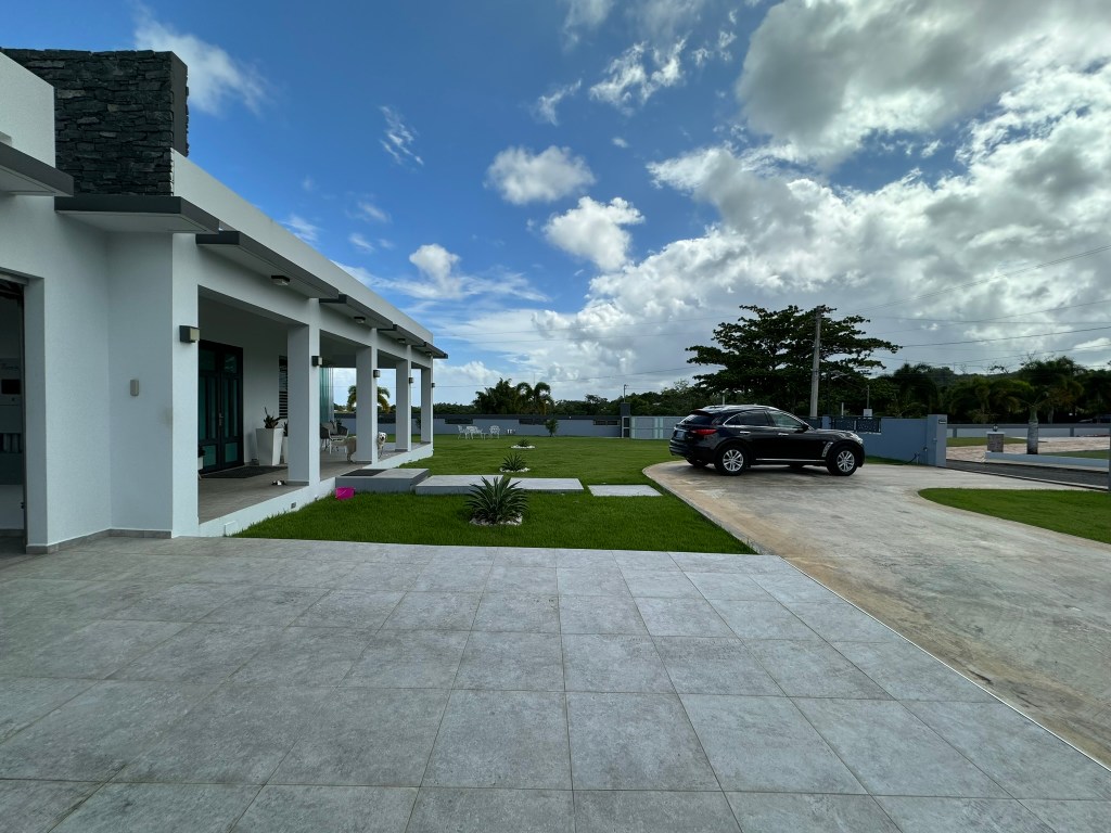 - Elegant and modern property with 3.2 acres of land, built in 2022. This centric located property has: security doors and windows, 3 bedrooms, 3 bathrooms, open concept living-kitchen-dining-family room, interior laundry and storage, large interior terrace adaptable to family room, balcony, carport for two cars and additional outdoor covered parking with bathroom. It has approximately 4,400 square feet of total construction. Modern bathrooms and kitchen cabinets with granite countertops. Large 20′ x 14′ outdoor storage area, New 18 solar panels (450 watts) with 2 batteries, solar heater, 10 feet high ceilings, Jacuzzi, 3 A/C, Dog shelter and the option to include 1,800 gal. Stanley Steel water reserve and chandelier glass lamp. All this on a 3.2-acres of land with fruit trees, fenced in control access community, Urb. Monte Verde at Bo. Corcovado, Hatillo PR.