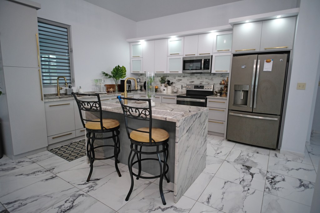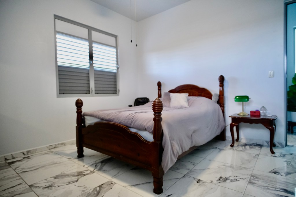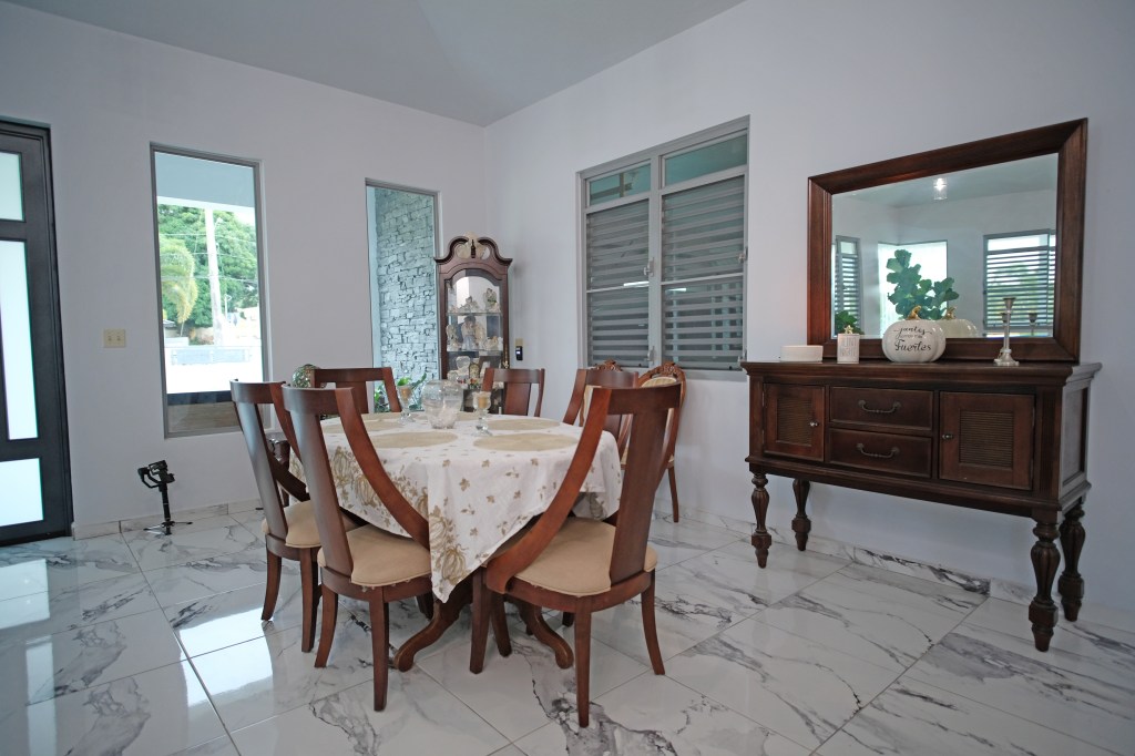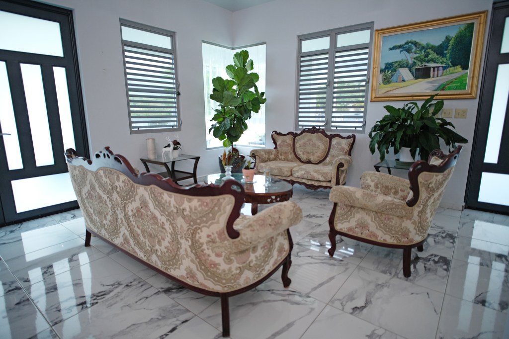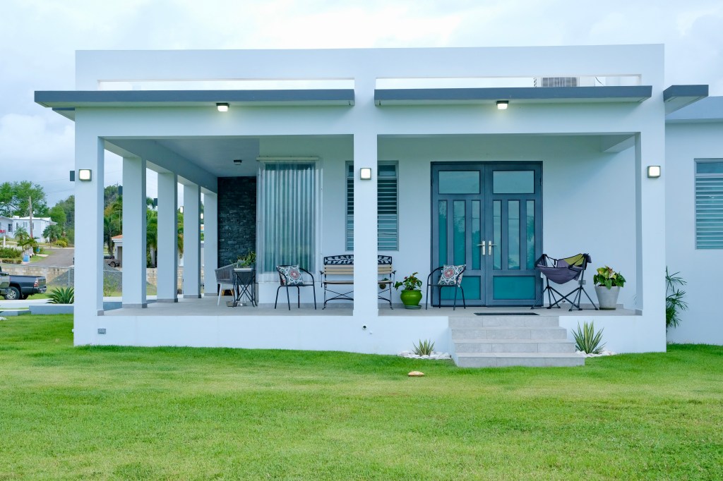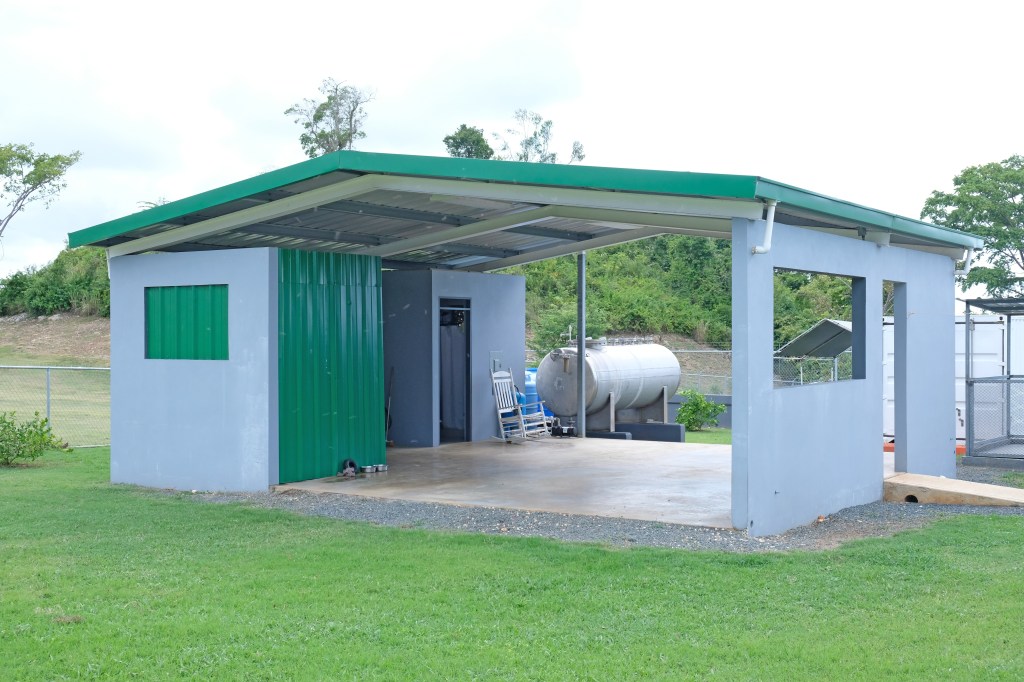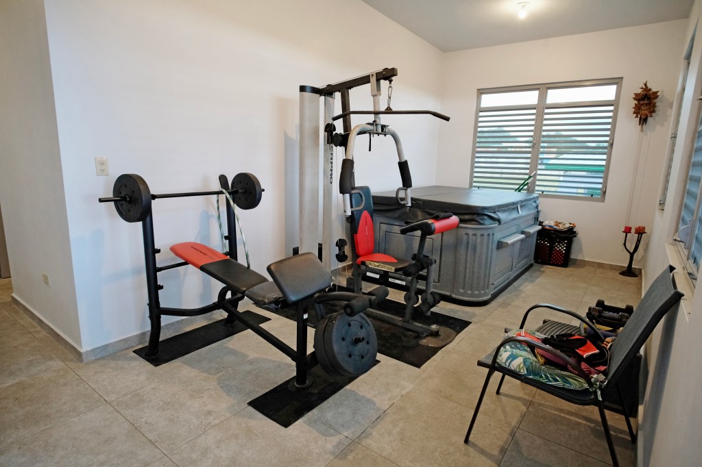 - Elegant and modern property with 3.2 acres of land, built in 2022. This centric located property has: security doors and windows, 3 bedrooms, 3 bathrooms, open concept living-kitchen-dining-family room, interior laundry and storage, large interior terrace adaptable to family room, balcony, carport for two cars and additional outdoor covered parking with bathroom. It has approximately 4,400 square feet of total construction. Modern bathrooms and kitchen cabinets with granite countertops. Large 20′ x 14′ outdoor storage area, New 18 solar panels (450 watts) with 2 batteries, solar heater, 10 feet high ceilings, Jacuzzi, 3 A/C, Dog shelter and the option to include 1,800 gal. Stanley Steel water reserve and chandelier glass lamp. All this on a 3.2-acres of land with fruit trees, fenced in control access community, Urb. Monte Verde at Bo. Corcovado, Hatillo PR.